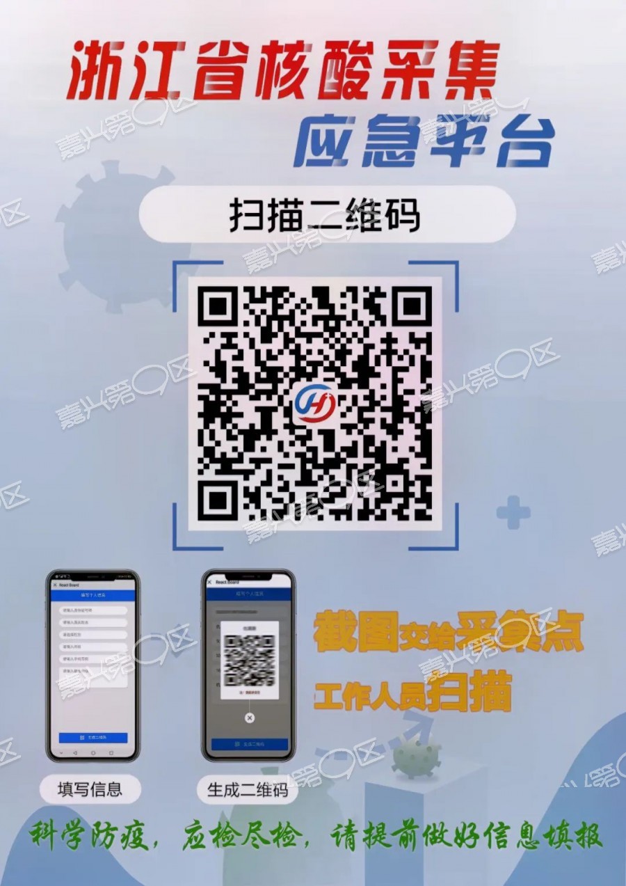 2.现场采样需携带智能手机、本人身份证件。无智能手机、身份证人员需由家人提前扫描“浙江省核酸采集应急平台”二维码填写信息,现场出示“采集码”。