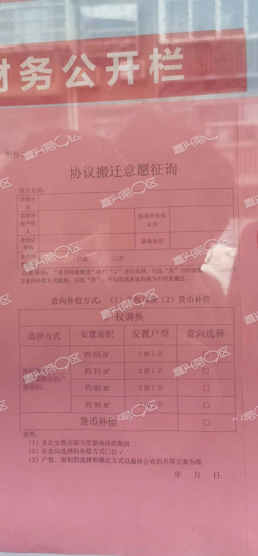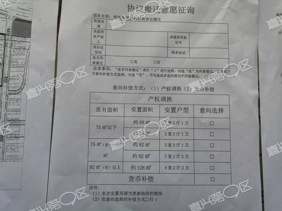 随着各区块《协议搬迁入户调查公告》正式发布,从今天起,协议搬迁意向登记工作同步启动。协议搬迁实施主体为各区块属地街道办事处,调查期限为2022年5月13日至2022年5月18日。