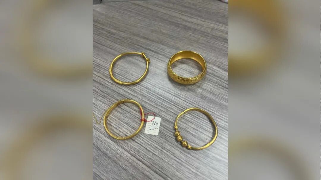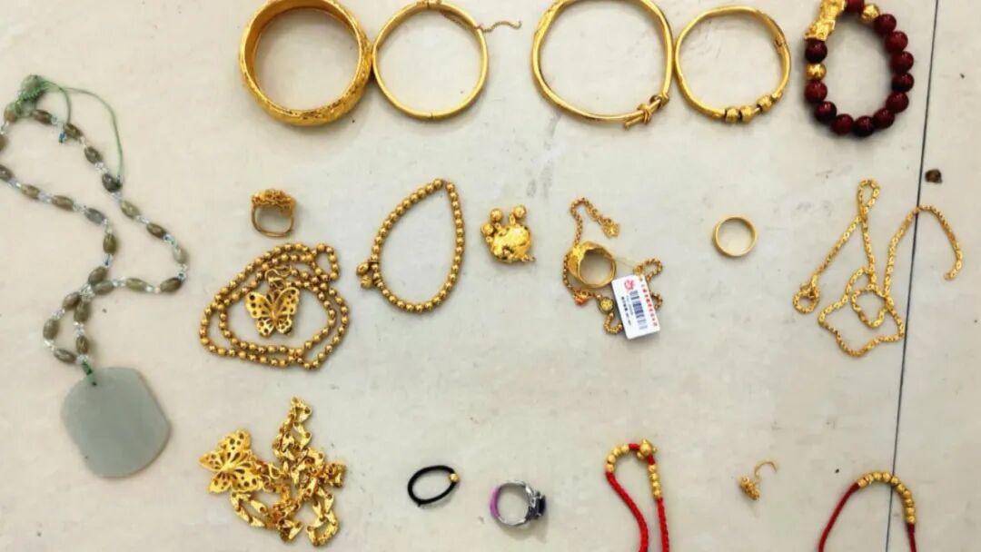 平湖市公安局当湖派出所警察 邵佳伟:有4个黄金手镯、还有五六个黄金项链、还有一些黄金手链、戒指、耳环等等,她们是2月7号早上,从平湖出发回了江苏老家,之后是2月20号上午回到平湖,打开家门的时候,发现她的保险箱被人用切割机破坏,里面的黄金被偷被偷走了。